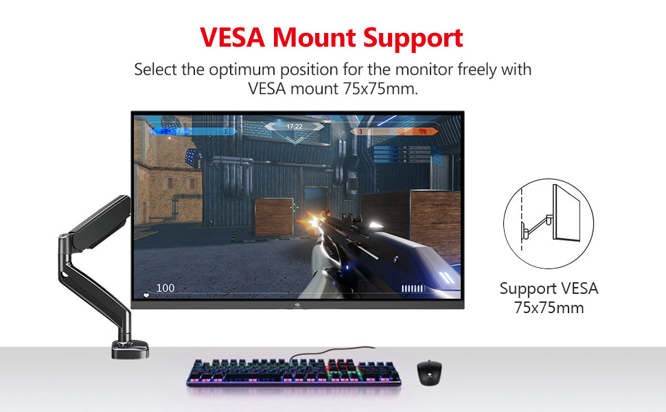 يدعم التثبيت العالمي 75*75 مم، يمكن تركيب الشاشة على الحائط أو ذراع التثبيت بسهولة، مما يتيح اختيار الموضع الأمثل للشاشة بحرية.