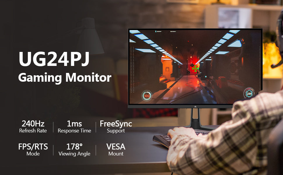 شاشة الألعاب UG24PJ مصممة خصيصًا للألعاب. مع معدل تحديث 240Hz، يتم عرض كل إطار بوضوح وحدّة وسلاسة فائقة. وداعًا لتقطّع الصورة وتشويش الحركة. زمن الاستجابة MPRT 1ms يعني سرعة بدون تشويش، لتجربة محسّنة تمنح ألعابك وأفلام الحركة سلاسة وانسيابية غير مسبوقة.