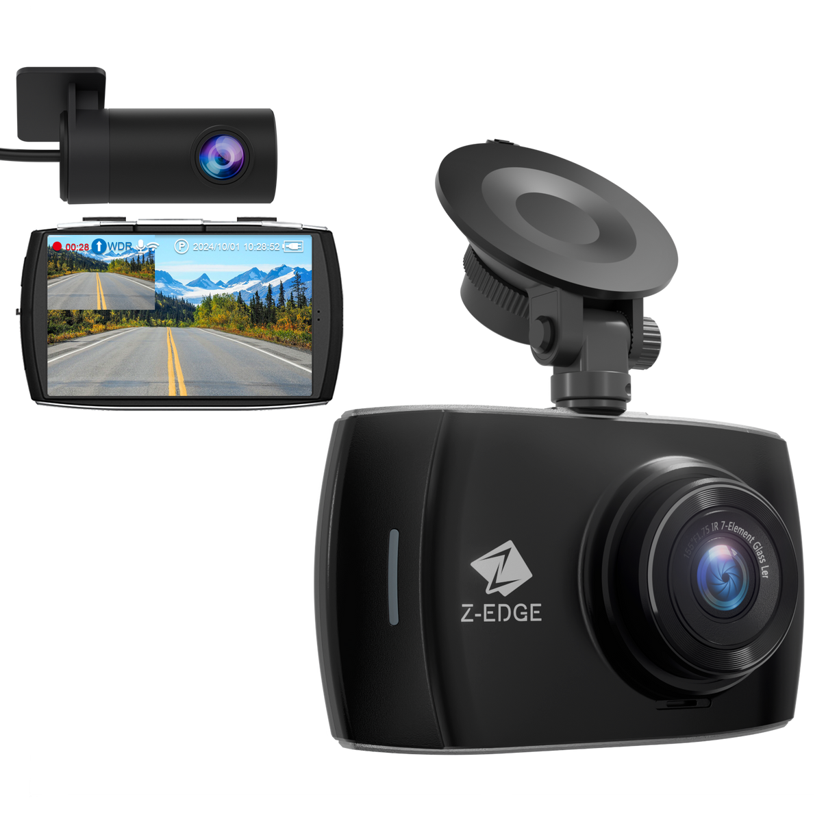 Z-EDGE T4 4" Touch Screen 4K Dual Dashcam (32GB MicroSD Card Included)